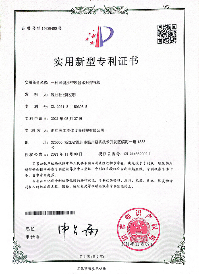實用新型專利證書
