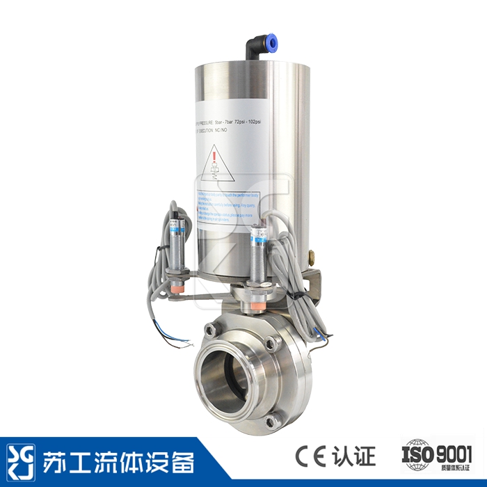該款氣動蝶閥應用在設備管路中物料流向切斷,廣泛應用于食品、釀酒、飲料、乳制品、牙膏化妝品、生物制藥等行業。