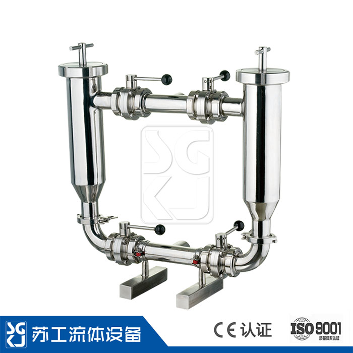 該款過濾器運用全可拆卸式結構設計,方便用戶更換配件。主要作用除去少量固體顆粒,維護其它設備的正常工作,當流體進入過濾器缸體后,過濾網孔極其微小,顆粒物體被過濾網阻擋,過濾網孔極其微小,排出清潔液體。兩個筒體可在線拆卸清洗。廣泛應用于食品、啤酒、飲料、化工等行業。