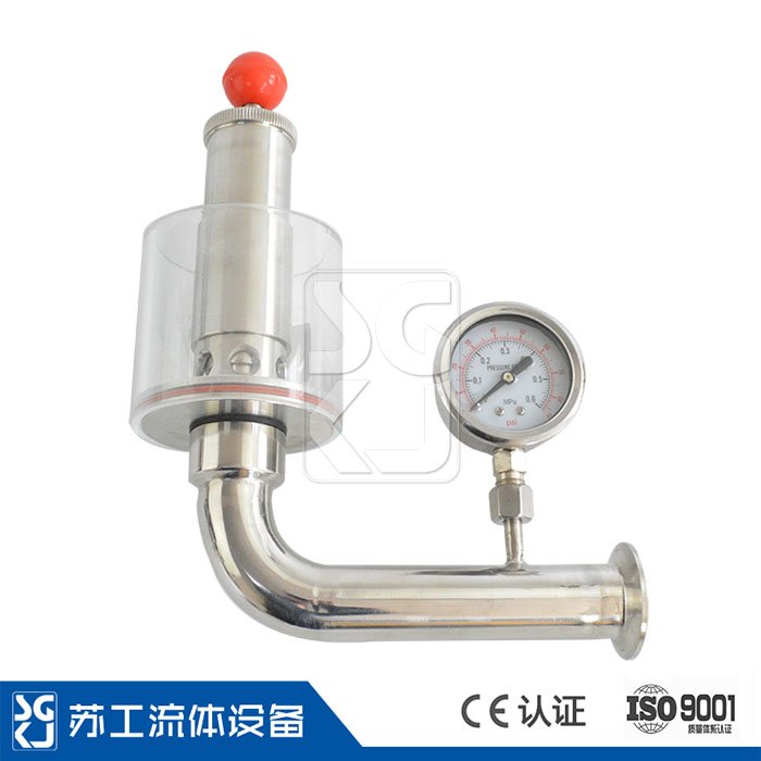 The valve calibrates a specific pressure by adjusting the spring's adjusting cover compression spring. When the pressure in the device is greater than the calibration pressure of the exhaust valve, the valve seat automatically pops up, the pressure in the equipment system is released, and the fermentation of the material is effectively protected. The container system is secure. The adjustment cover has a pressure scale value line, which can be set according to the user's need. The valve has a glass visible water seal, which can be filled with water (filling water through the exhaust port), and the glass barrel can be seen when the valve releases pressure. An additional pressure gauge can be used.